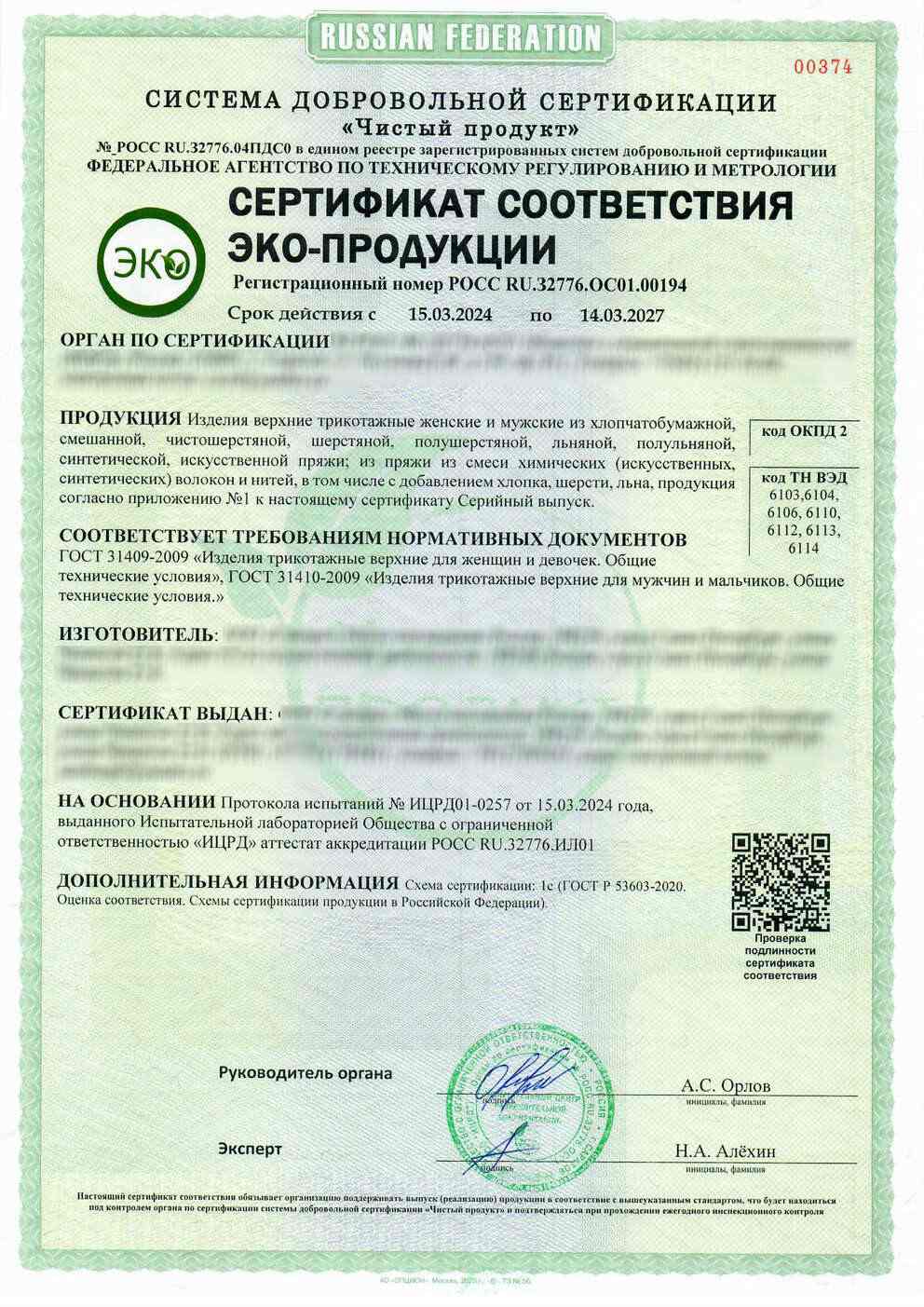 Эко-сертификат подтверждает, что ваш товар произведен в соответствии с экологически чистыми технологиями и не содержит в себе вредных веществ. Это документ, который окажется особенно полезным, если вы хотите обратить внимание на свою продукцию среди других товаров на полке магазина.